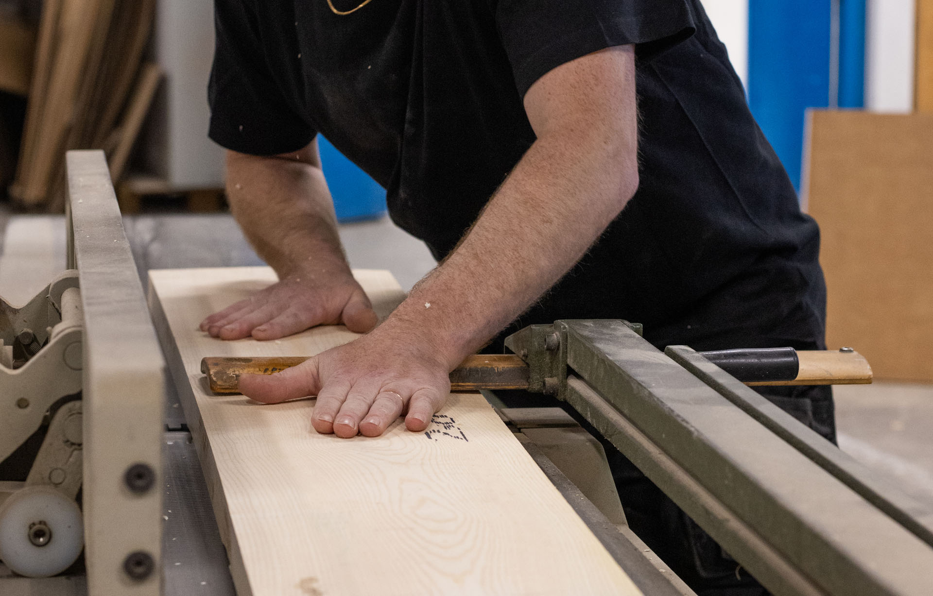 Varje detalj räknas. Från träslagets struktur till ytbehandlingens känsla. För att kunna kontrollera kvaliteten fullt ut ytbehandlar vi våra produkter i egen regi. Skräddarsydda produkter kan ta tid, men det huvudsakliga målet är att du känner dig 110% nöjd i slutändan.